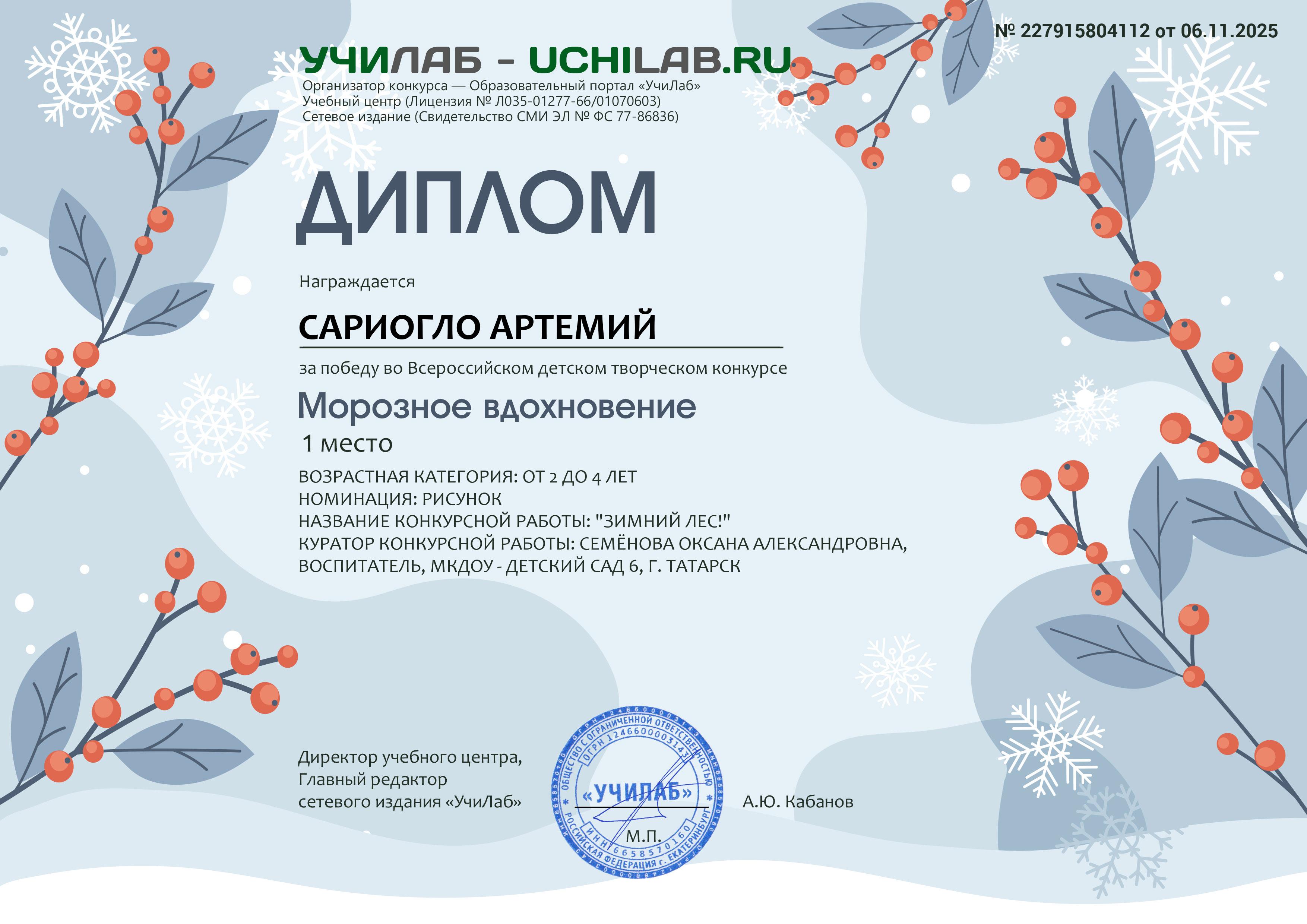 Творческий конкурс "Морозное вдохновение"